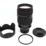 In dotazione tappi, paraluce, filtro UV e scatola originale.